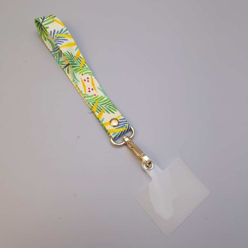 - Specifications support picture upload: wrist style [green leaves on white background] pattern lanyard + micro-transparent clip