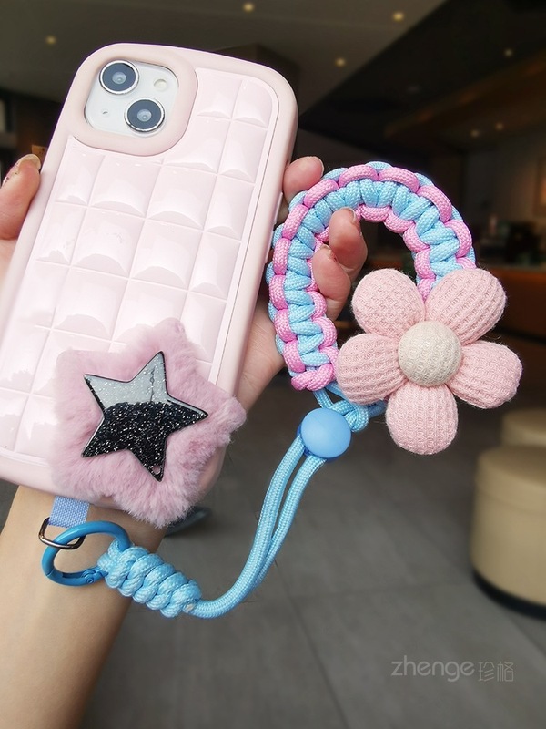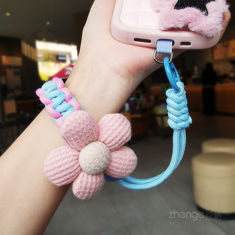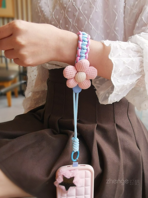 - Specification Support Image Upload: Short Model [Cyan Pink] Sponge Flower Adjustable Braided Lanyard + Light Blue Card Strip