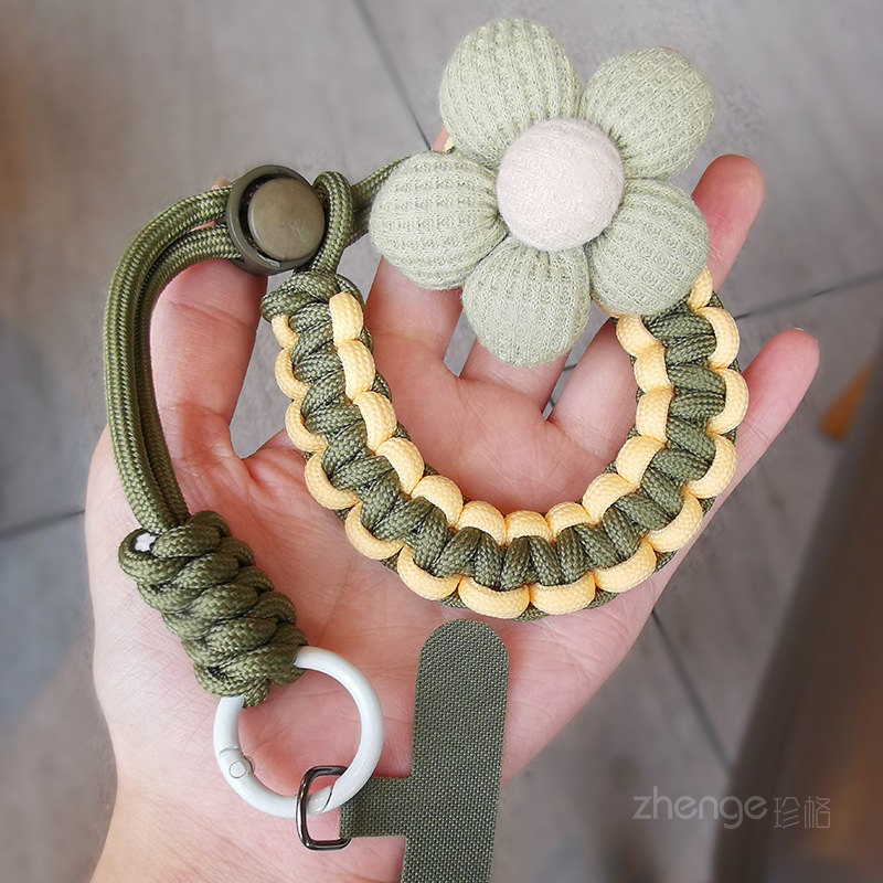 - Specification Support Image Upload: Short Model [Military Green Apricot] Sponge Flower Adjustable Braided Lanyard + Green Card Strip