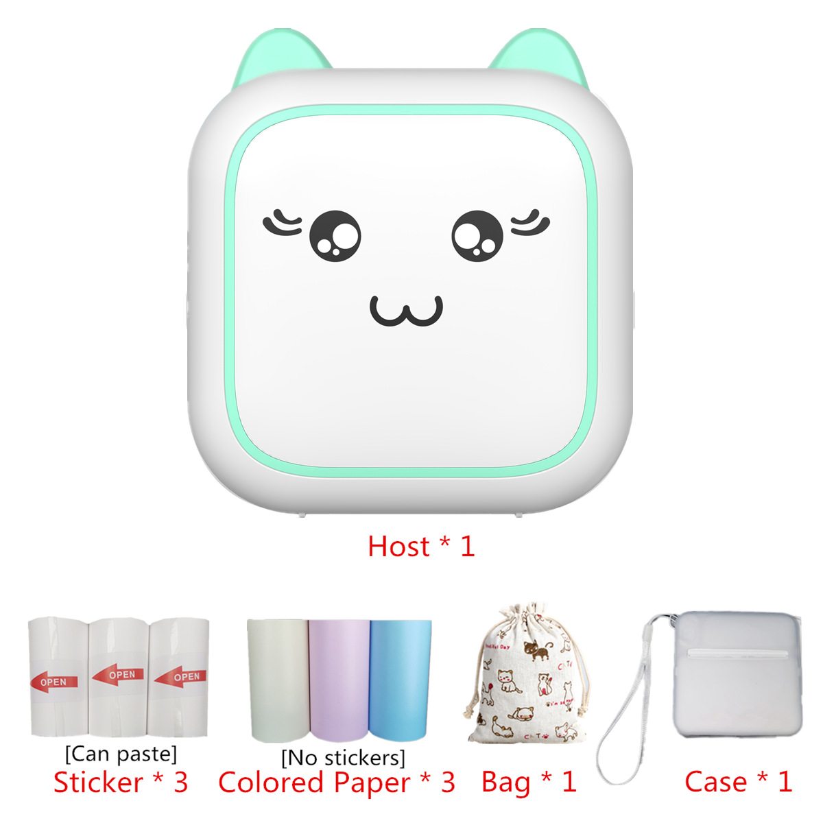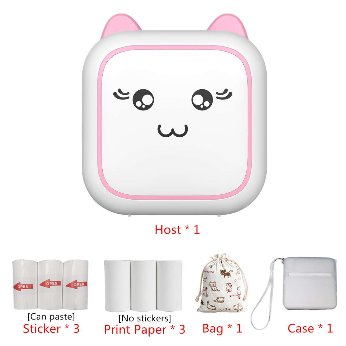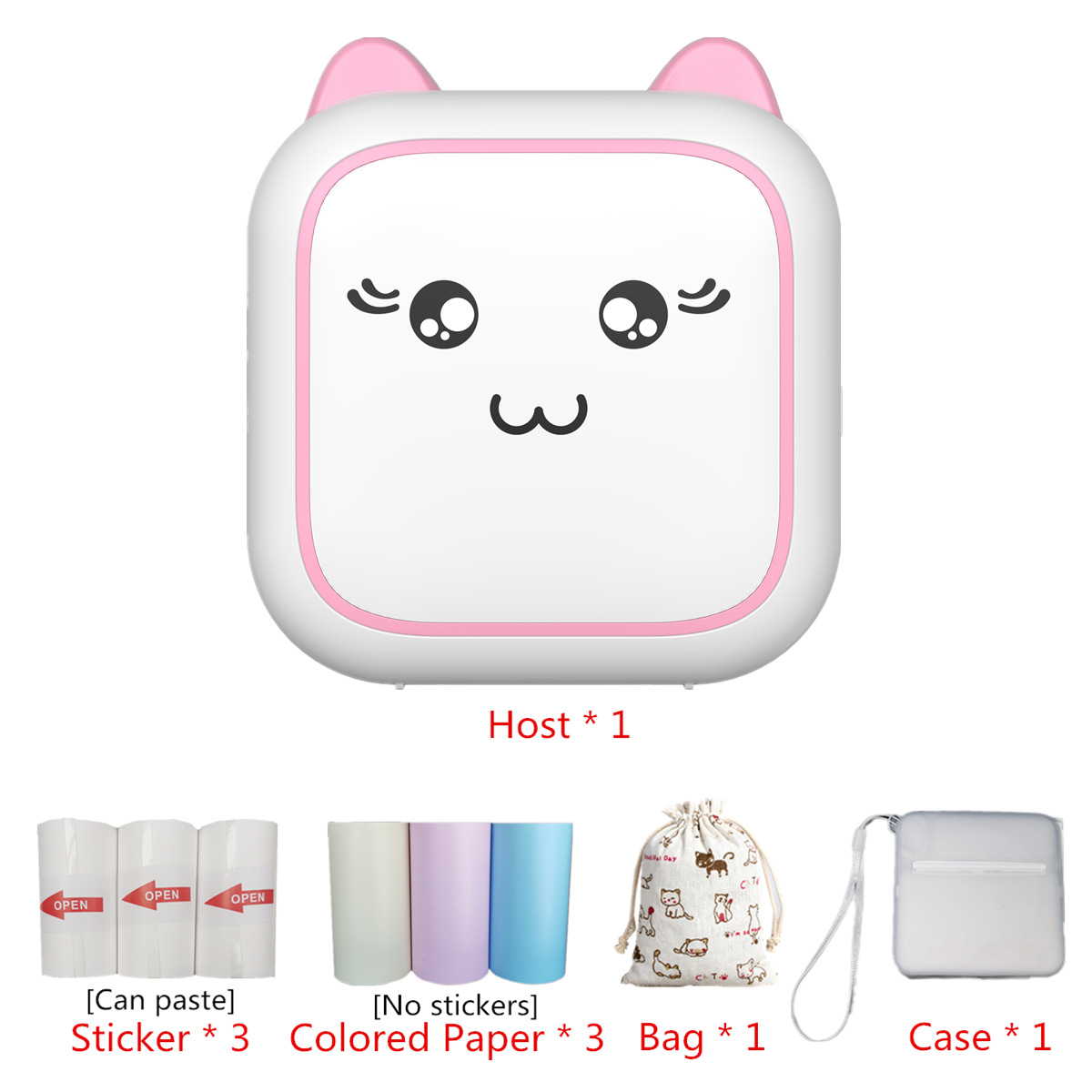 - 型號:M5粉色+3卷彩色紙+3卷不乾膠+布袋+保護套
