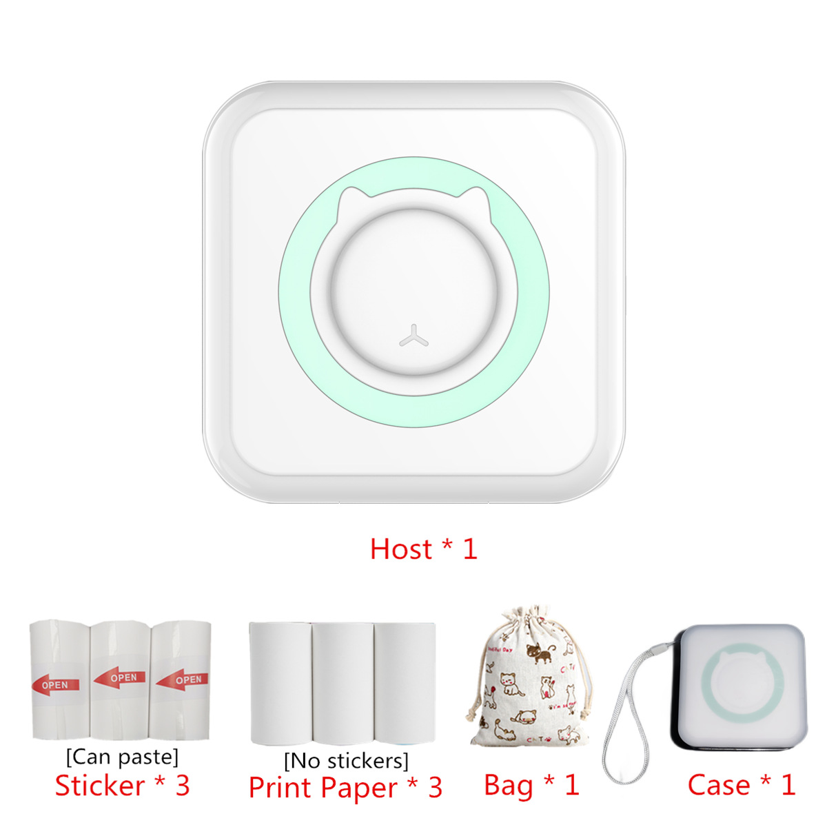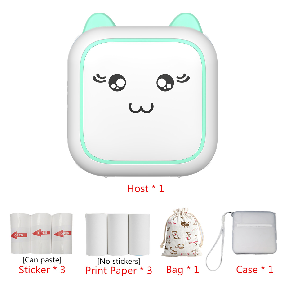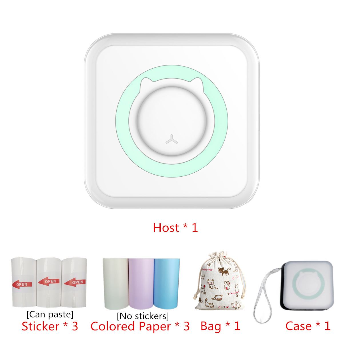 - 型號:M5粉色+3卷彩色紙+3卷不乾膠+布袋+保護套