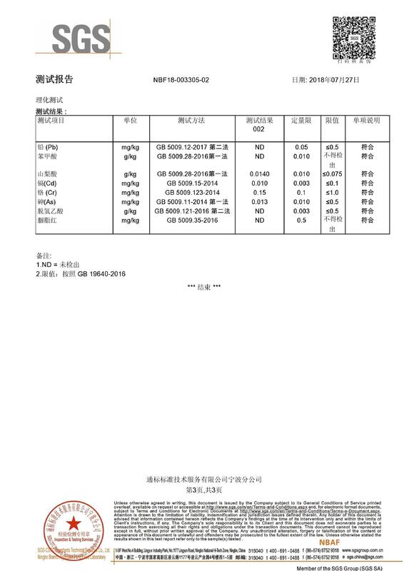 - Product standard number: food grade