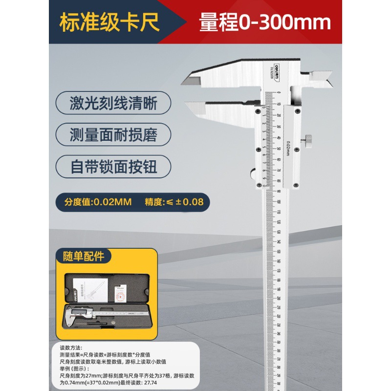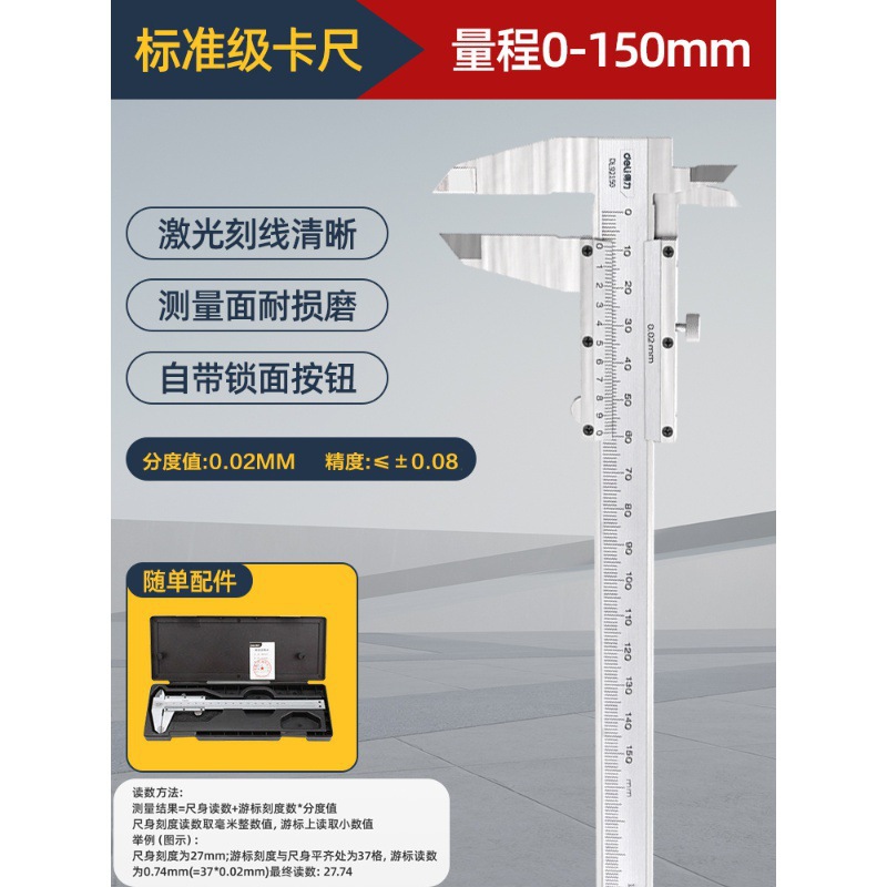 - Specifications: [Full-screen digital display] High-definition large-screen professional digital display caliper 150mm-DL312150