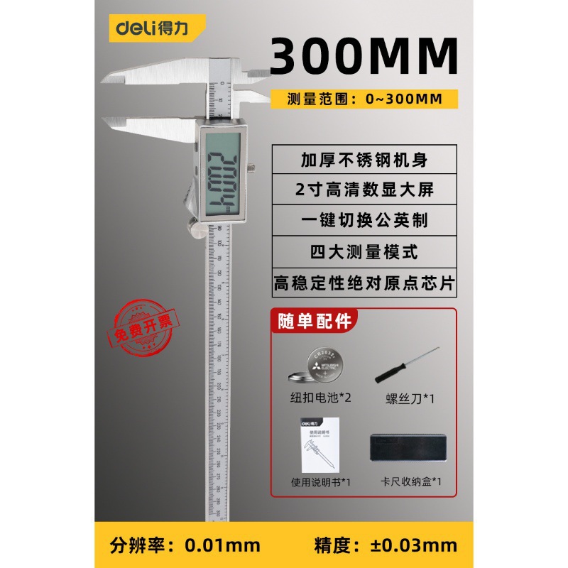 - Specifications: [All stainless steel model] Professional grade digital display caliper 0-300mm-DL91300
