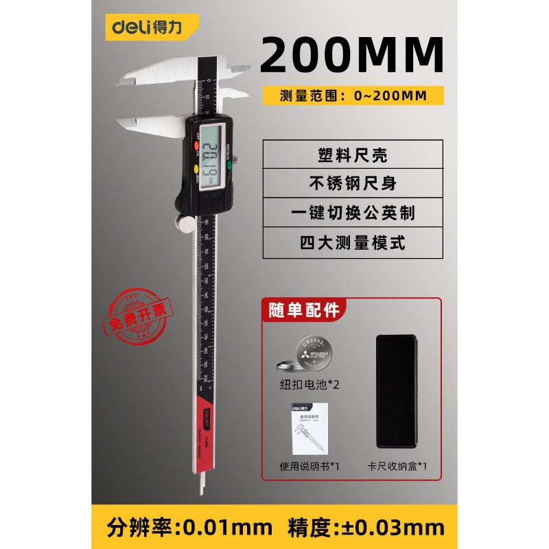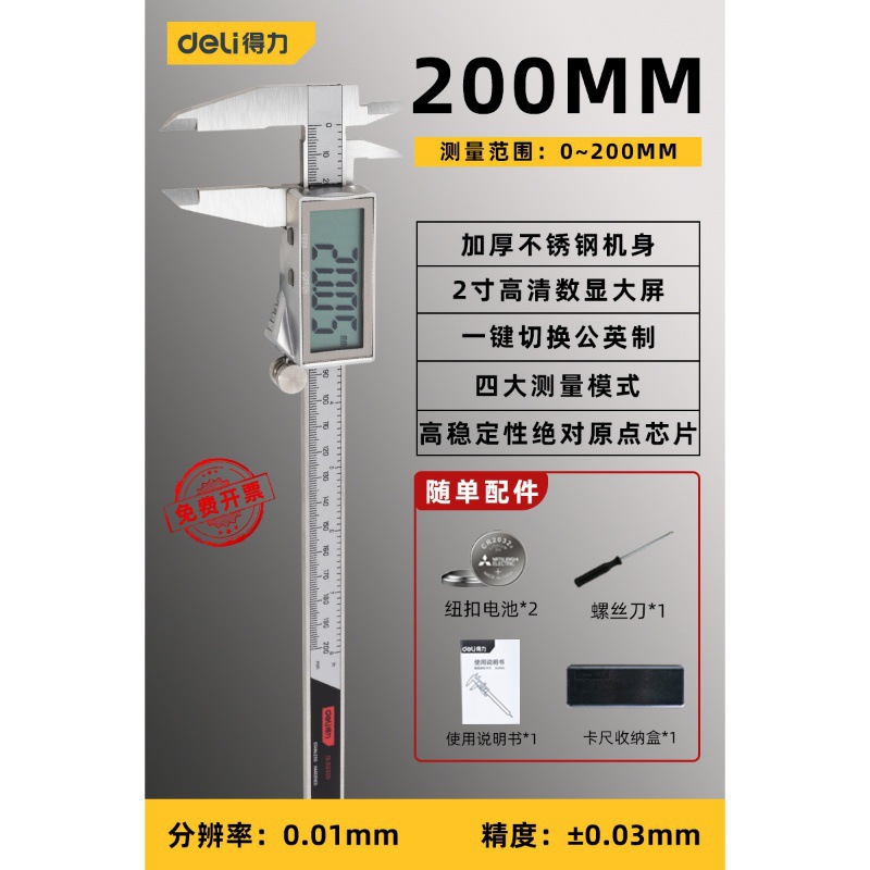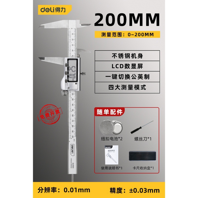 - Specifications: [All stainless steel model] Professional grade digital display caliper 0-200mm-DL91200