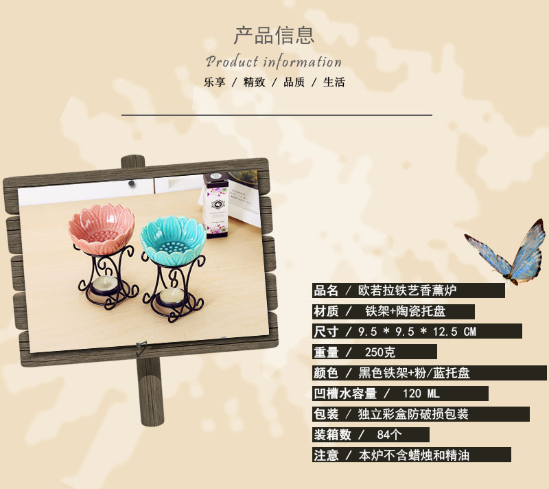 - Material: Ceramic + Iron Work