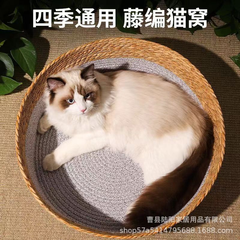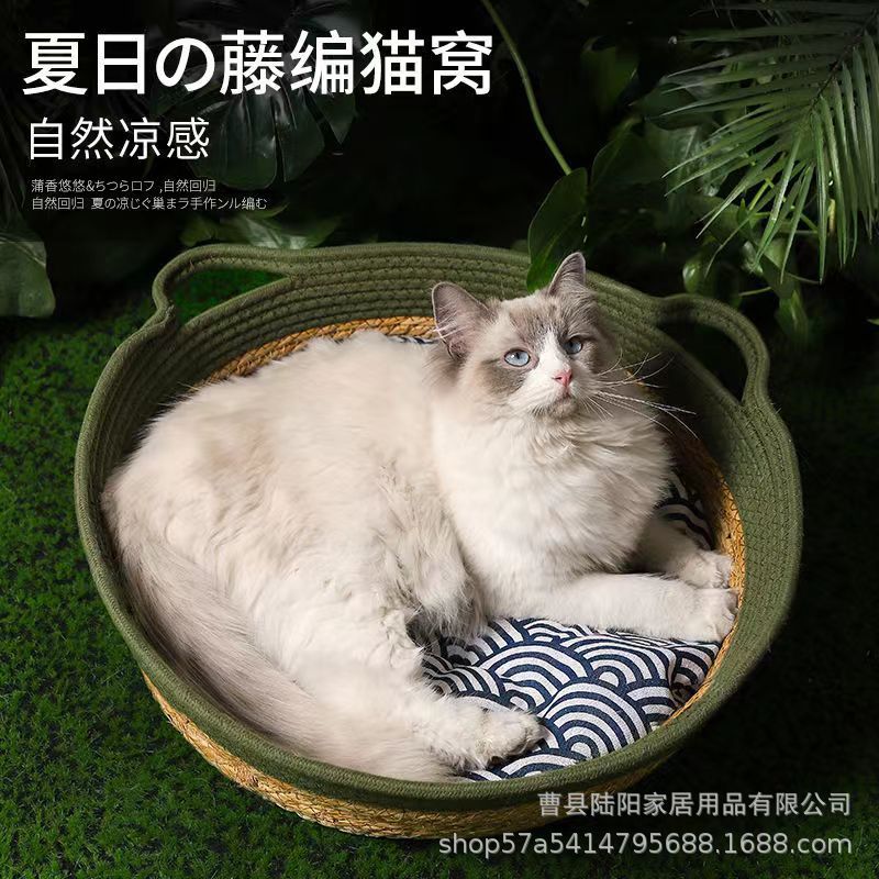 - Specifications: Double-eared original color rattan cat nest