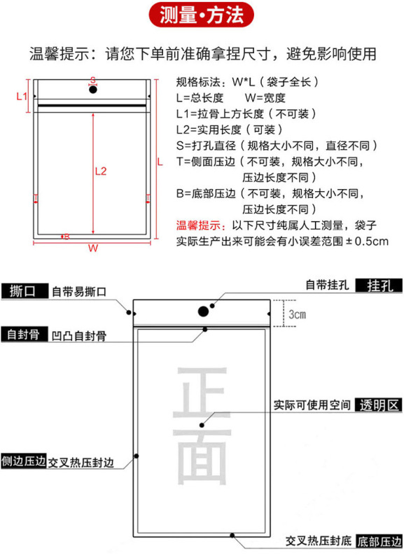 - Specification model: 15*18.5【Transparent pearlescent bag】