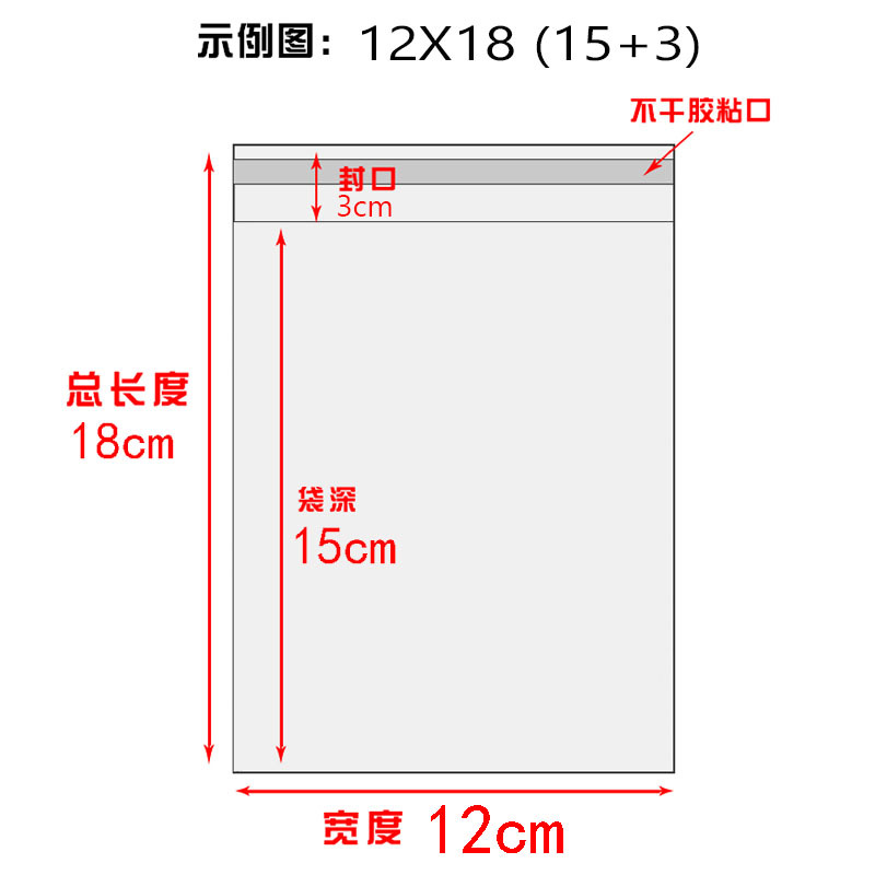 - 規格:厚度、寬度可選,總長度18cm(15cm袋深+3cm封口)