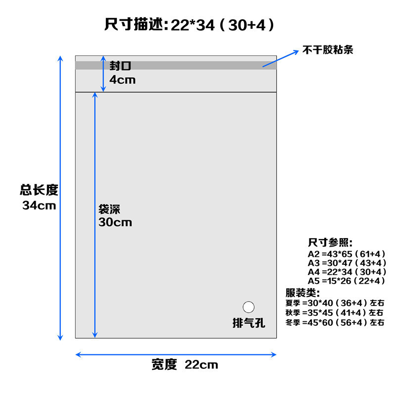 - 規格:厚度、寬度可選,總長度70cm(66cm袋深+4cm封口)