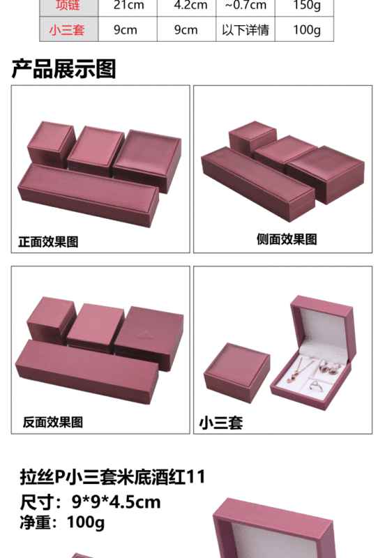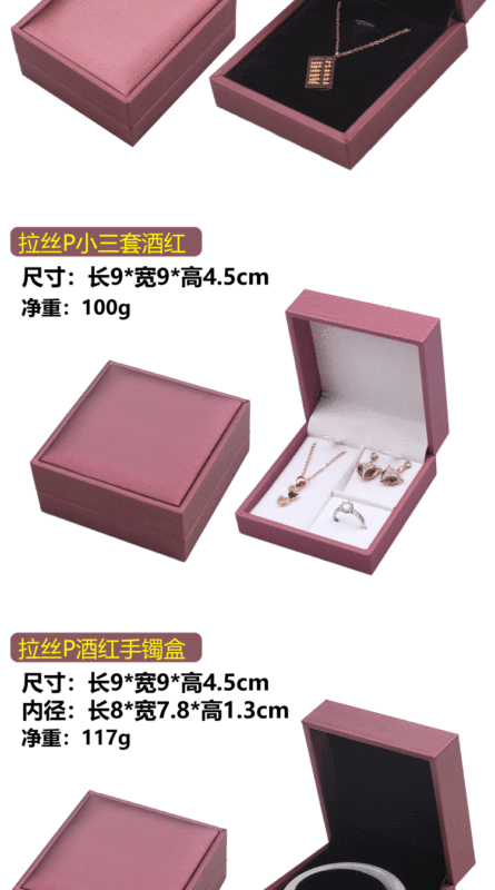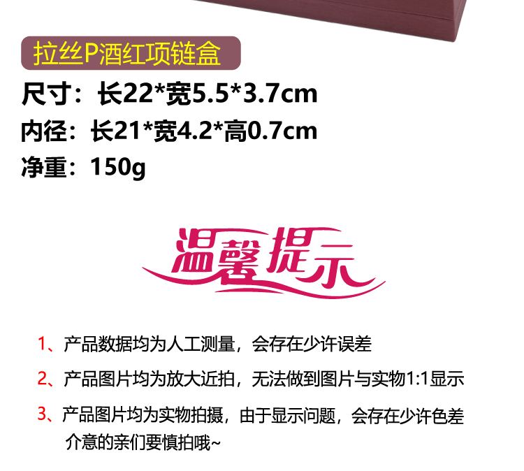 - 規格型號:15534(F9-22)拉絲P的項鍊盒黑底酒紅;1號