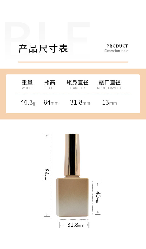- Specification model: 15ML; Champagne gold; Glass bottle