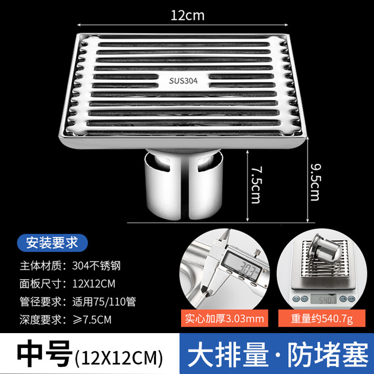 - Specification: [304 precision steel] Kitchen/bathroom area 12cm single use - deep water seal core