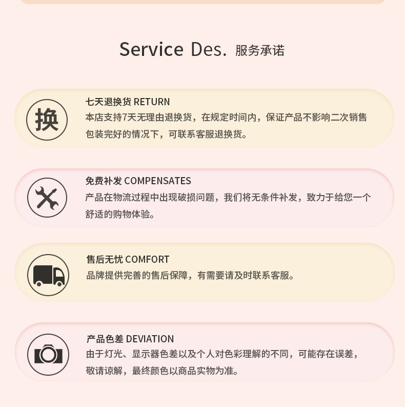 Within 15 days from the date of receipt, customers can be provided with an unconditional return service. The application for return of goods requires the consent of the merchant in the store.