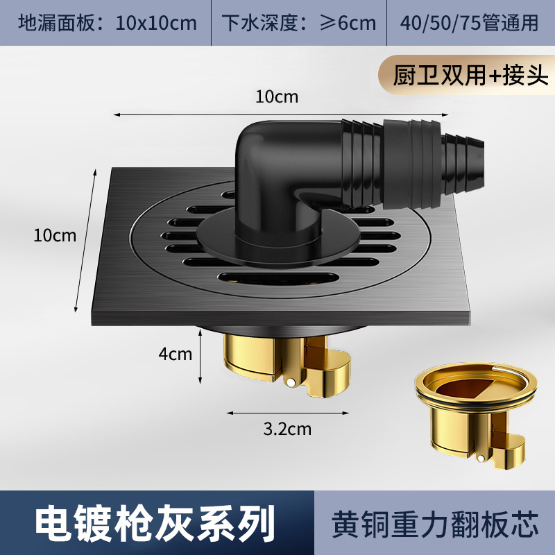 - 規格:【電鍍仿銅】廚衛地漏-雙用+接頭(全銅重力芯)
