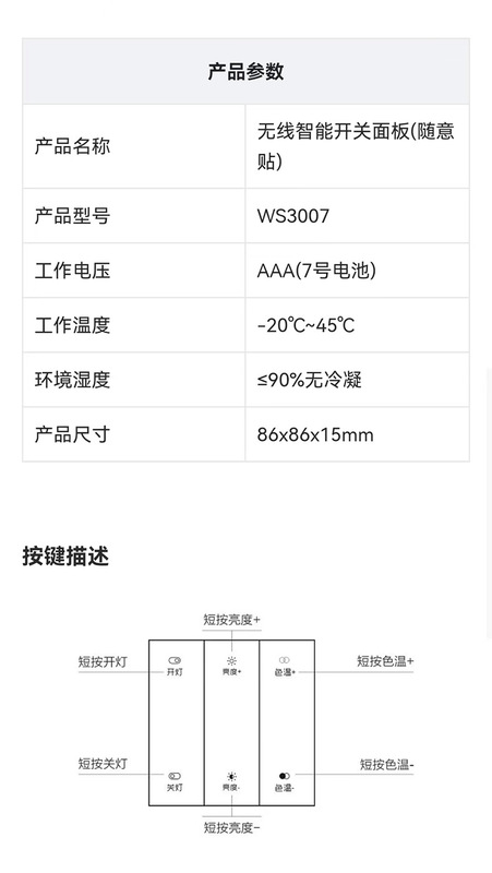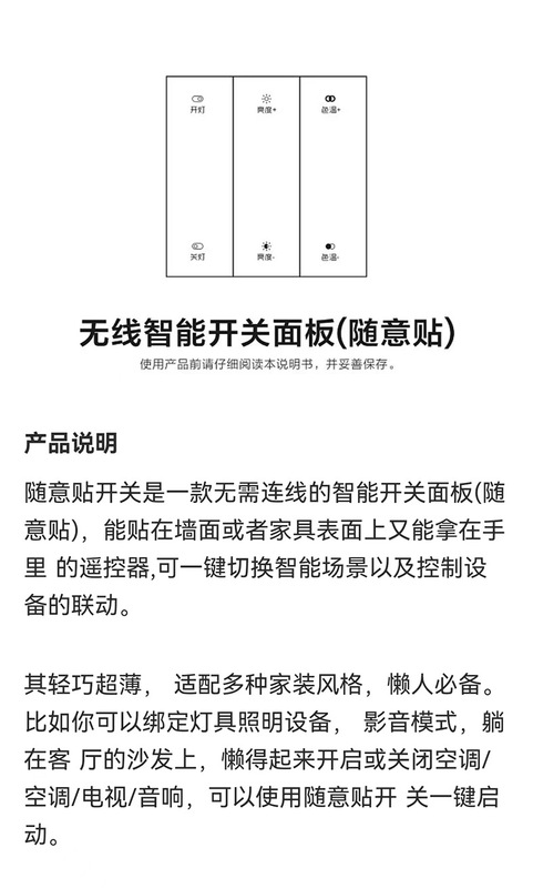 - Specification: Wireless Switch Panel (Battery Not Included) - 20-meter Adhesive