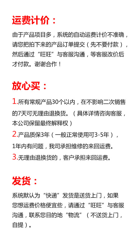 Delivery time: For products in stock, they will be shipped within 3 working days (excluding holidays) after you place your order and make payment. You will receive our notification after shipment.