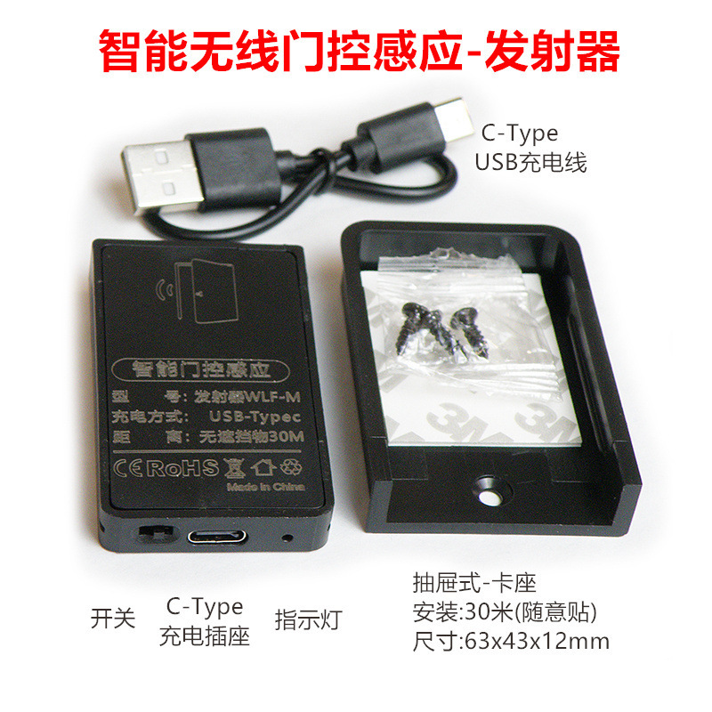 - Specification: Wireless Door Sensor (C-Type Charging) - Transmitter (Adhesive)