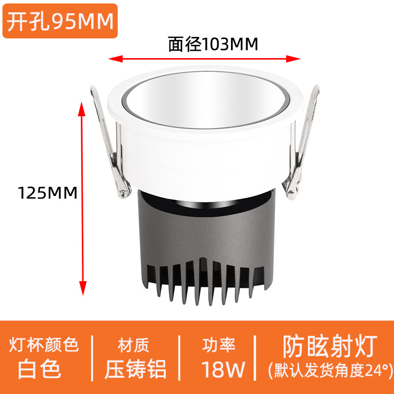 - Power: 18W Cut-out 95mm White Housing