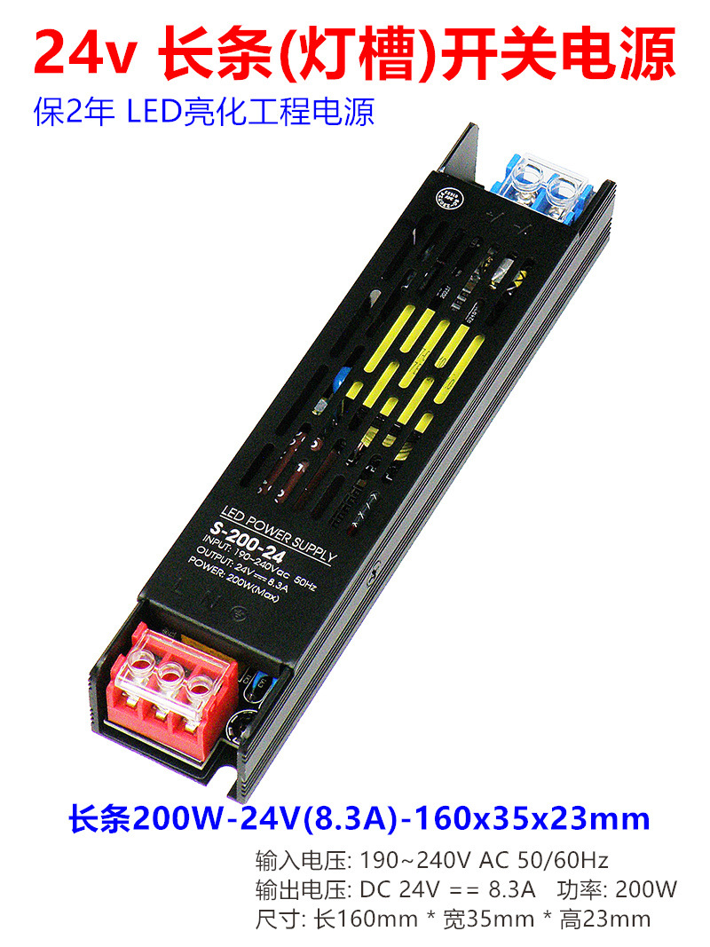 - Model: Long 200W-24V (8.3A) - 160x35x23mm