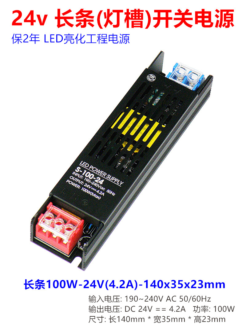- Model: Long 100W-24V (4.2A) - 140x35x23mm