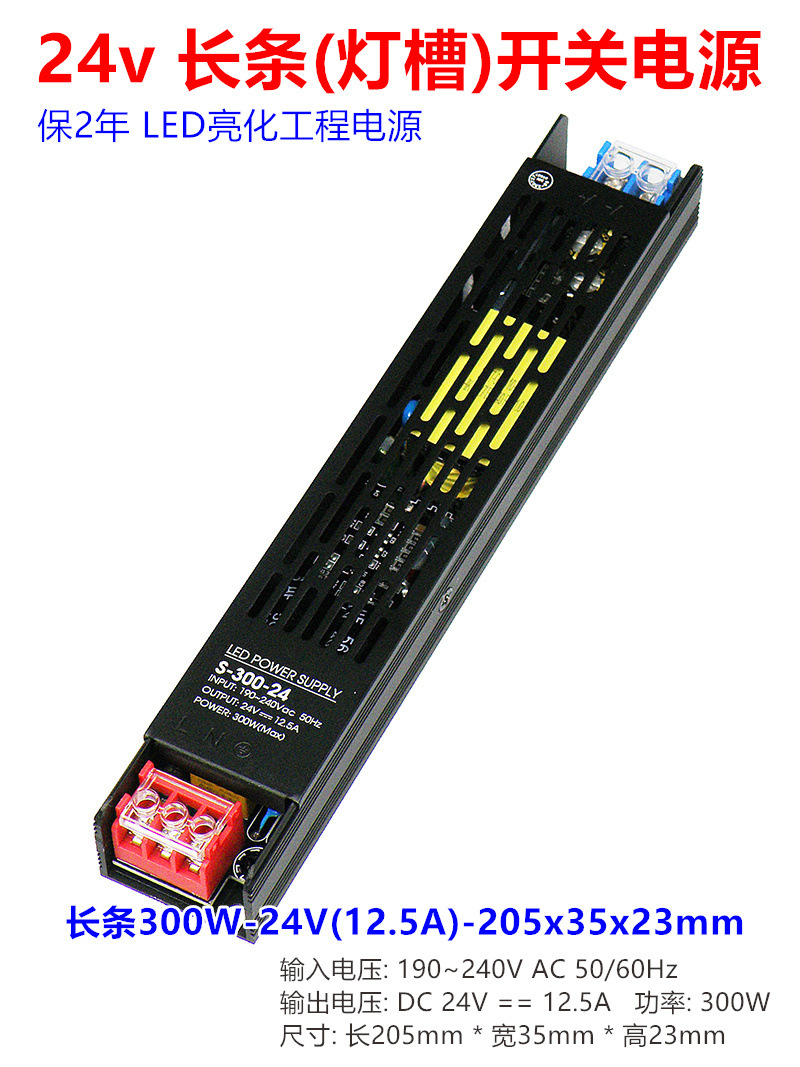 - Model: Long 300W-24V (12.5A) - 205x35x23mm