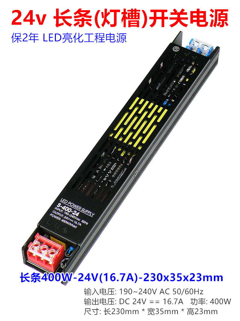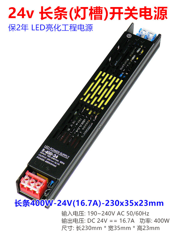 - Model: Long 400W-24V (16.7A) - 230x35x23mm