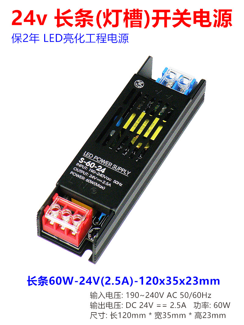 - Model: Long 60W-24V (2.5A) - 120x35x23mm