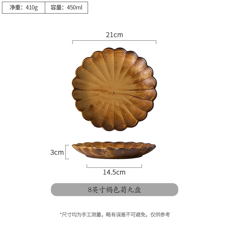 - 規格:8英寸褐色菊丸盤