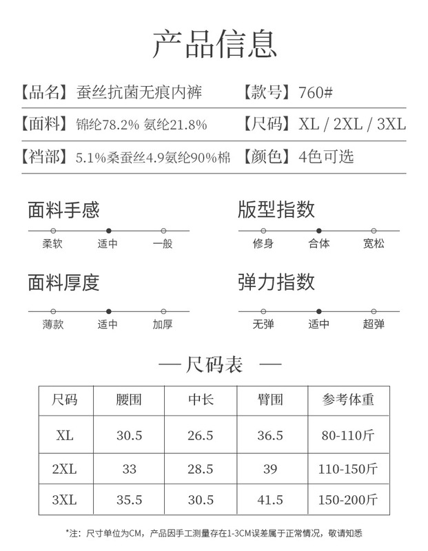 - Crotch lining ingredient: mulberry silk