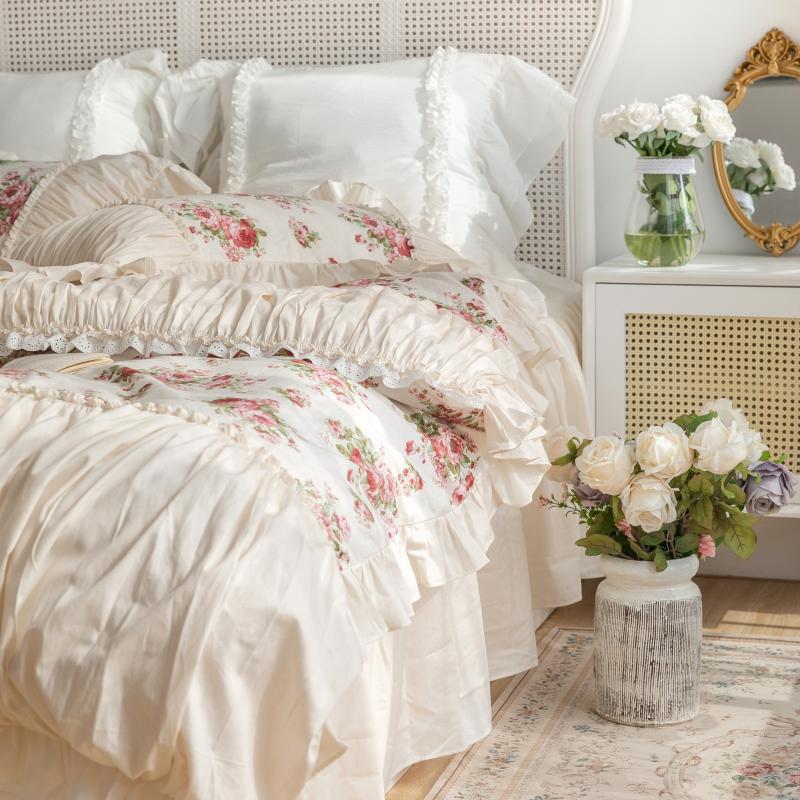 - 花型:全棉-公主風-奶油玫瑰