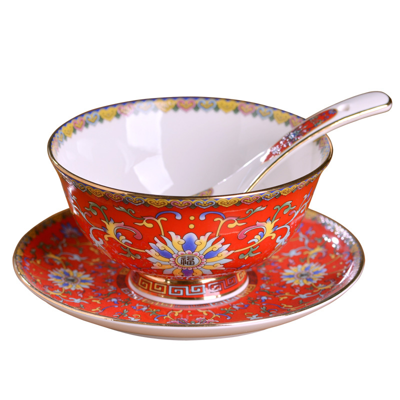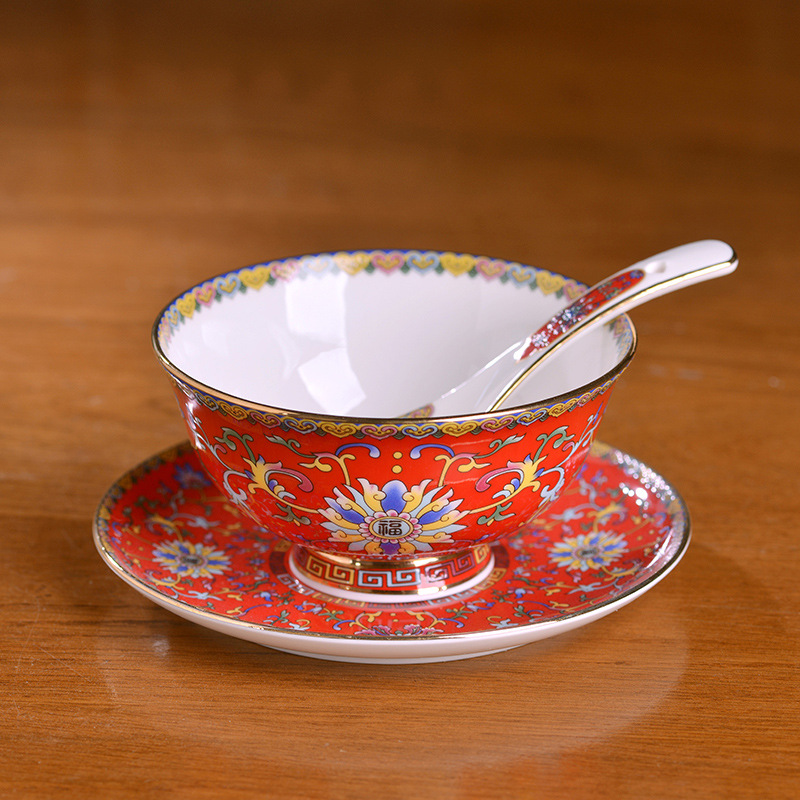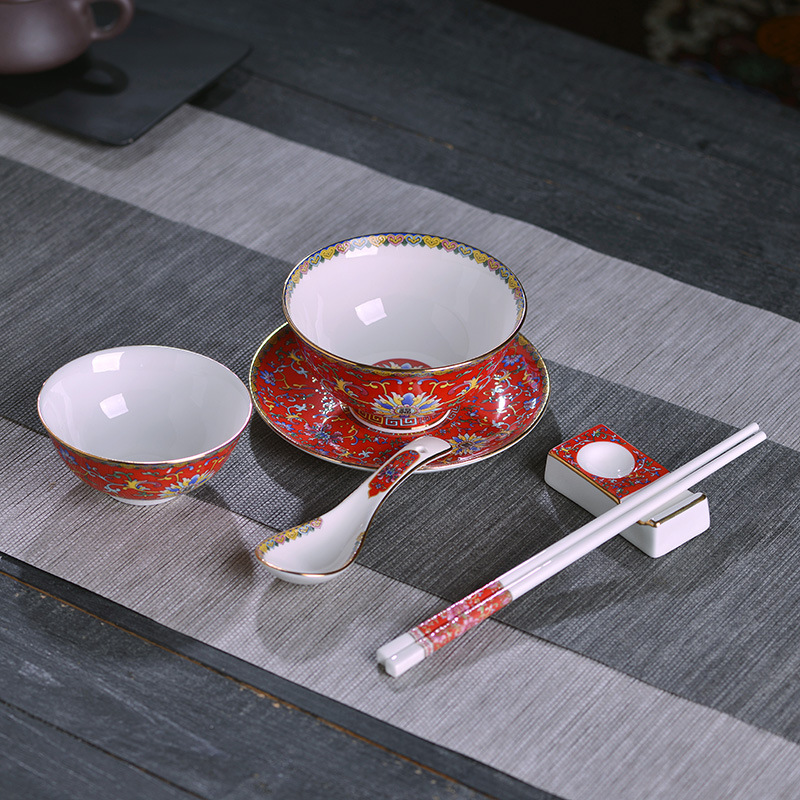 - Specification: 6-Piece Set Gold-Edge Red-Frost Enamel
