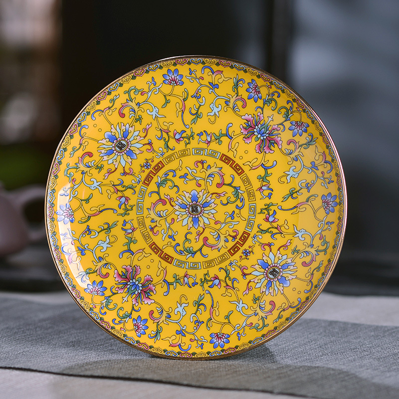 - Specification: 6-inch Gold-Edge Yellow-Frost Trinket Plate