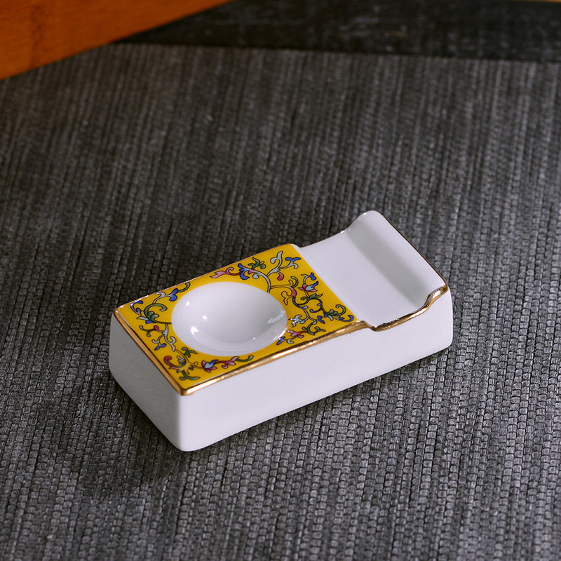 - Specification: Gold-Edge Yellow-Frost Chopstick Holder