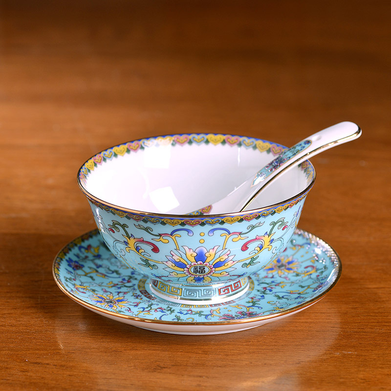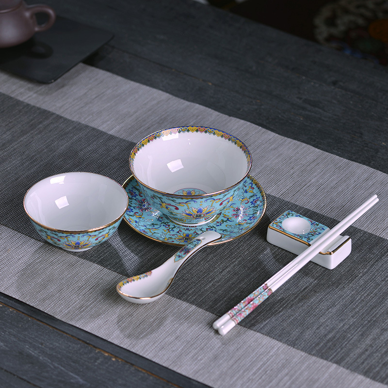 - Specification: 6-Piece Set Gold-Edge Blue-Frost Enamel