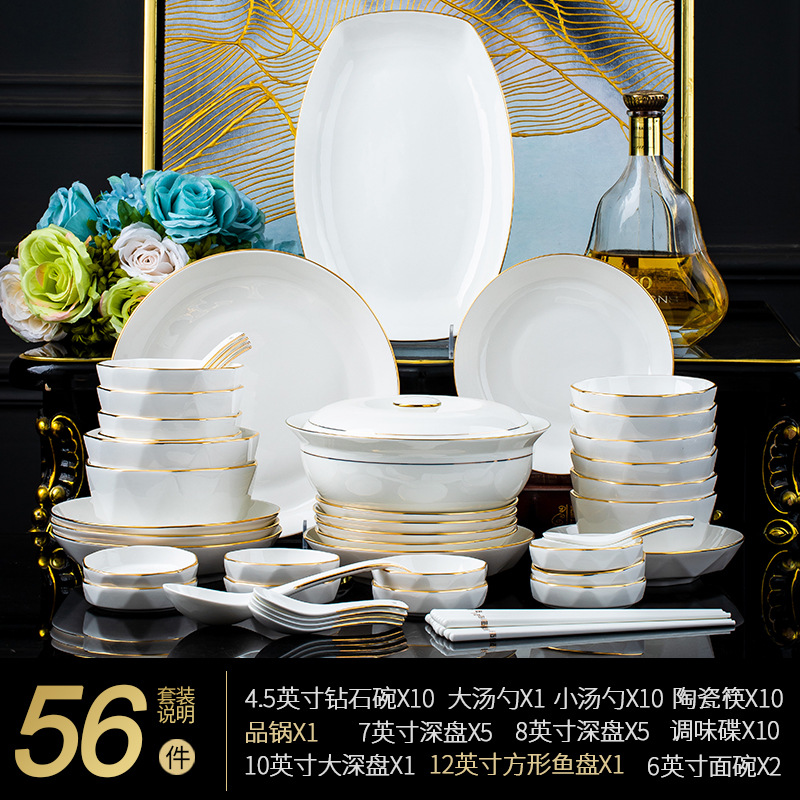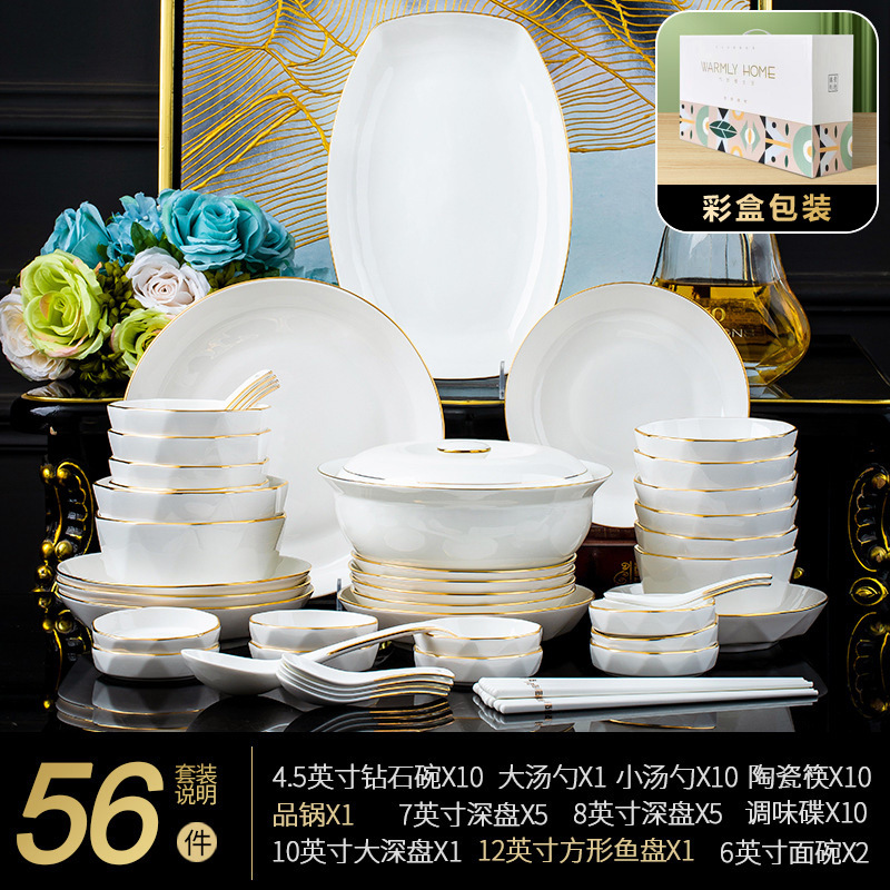 - 規格:描金56件套【白色彩盒裝】
