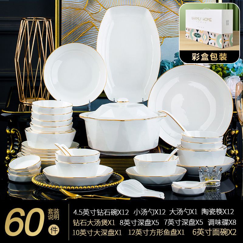 - 規格:描金60件套【白色彩盒裝】