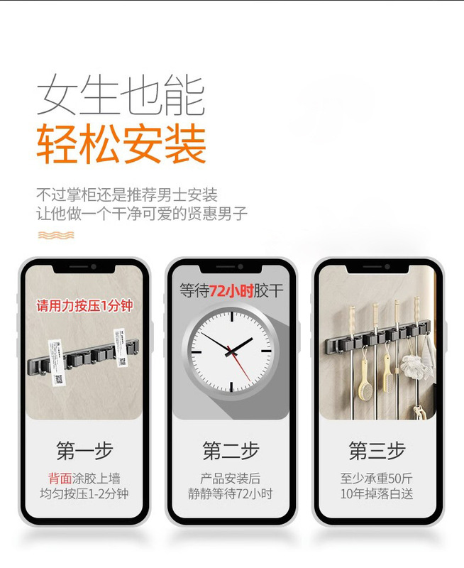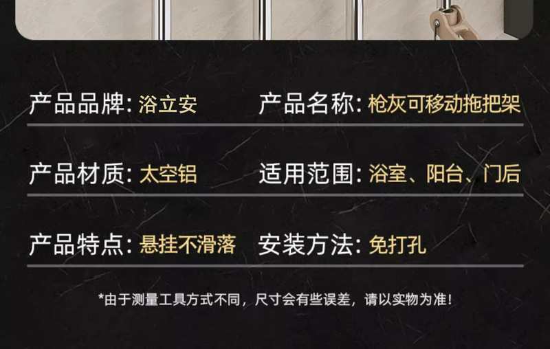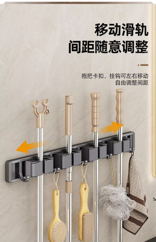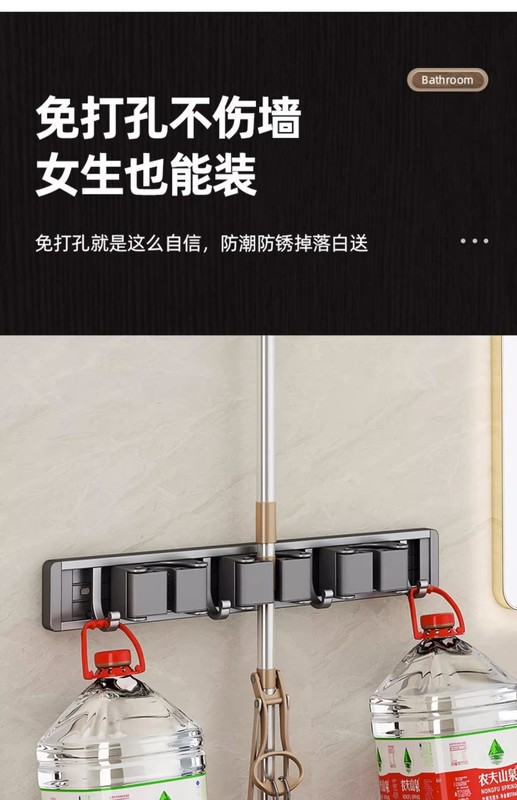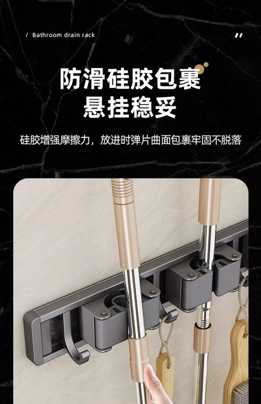 - Specification: Gun Grey (No Drilling) Mop Stand 50cm-4 Card 5 Hooks