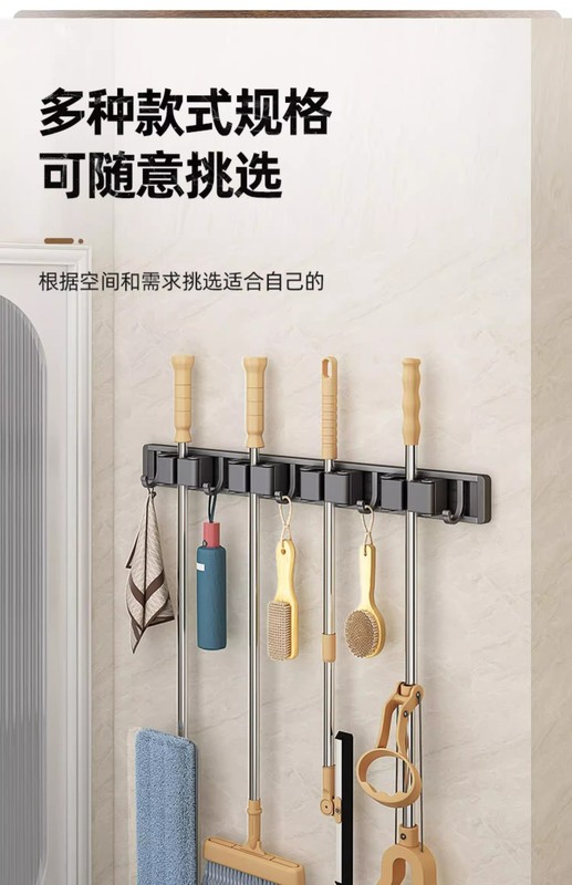 - Specification: Black (No Drilling) Mop Stand 70cm-6 Card 6 Hooks