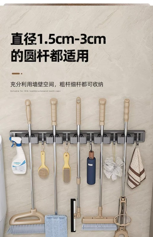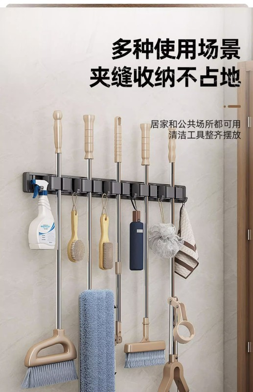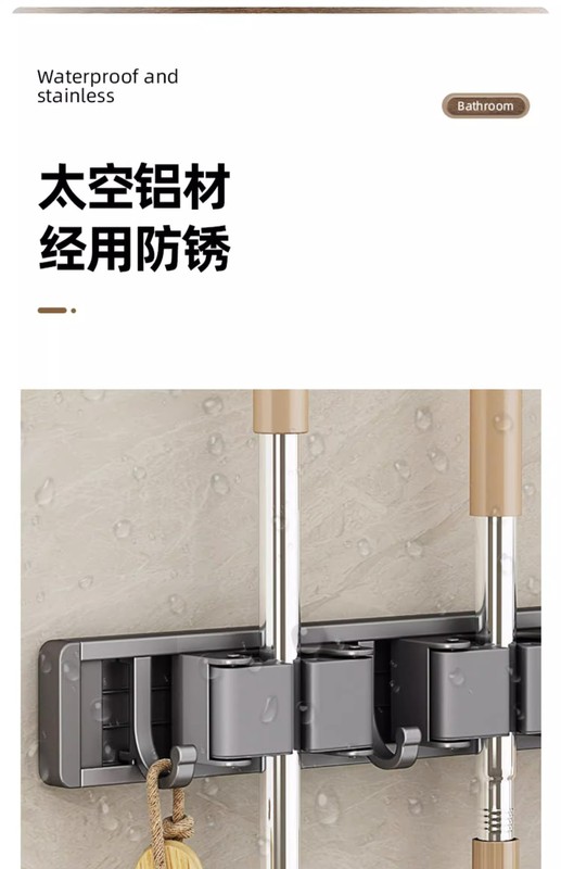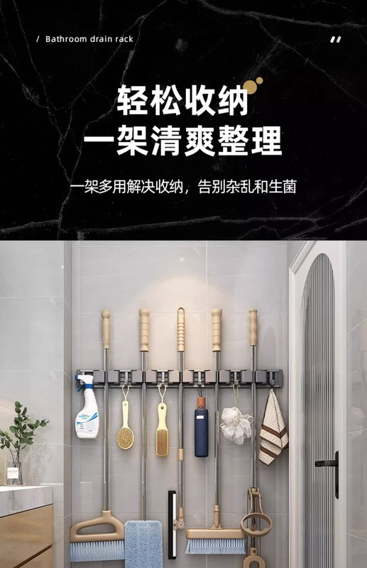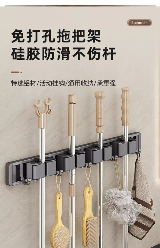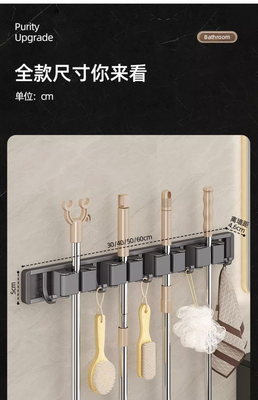 - Specification: Gun Grey (No Drilling) Mop Stand 60cm-5 Card 6 Hooks