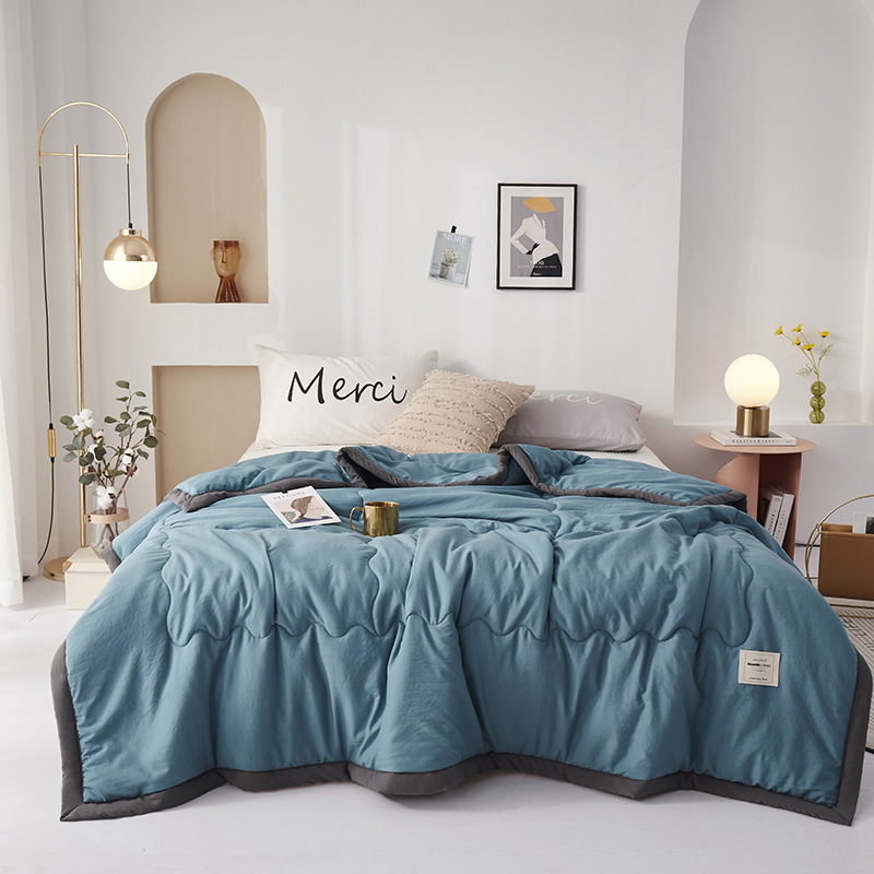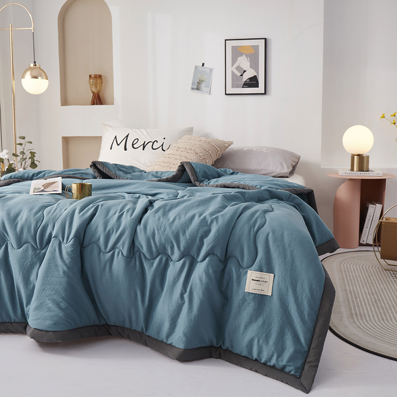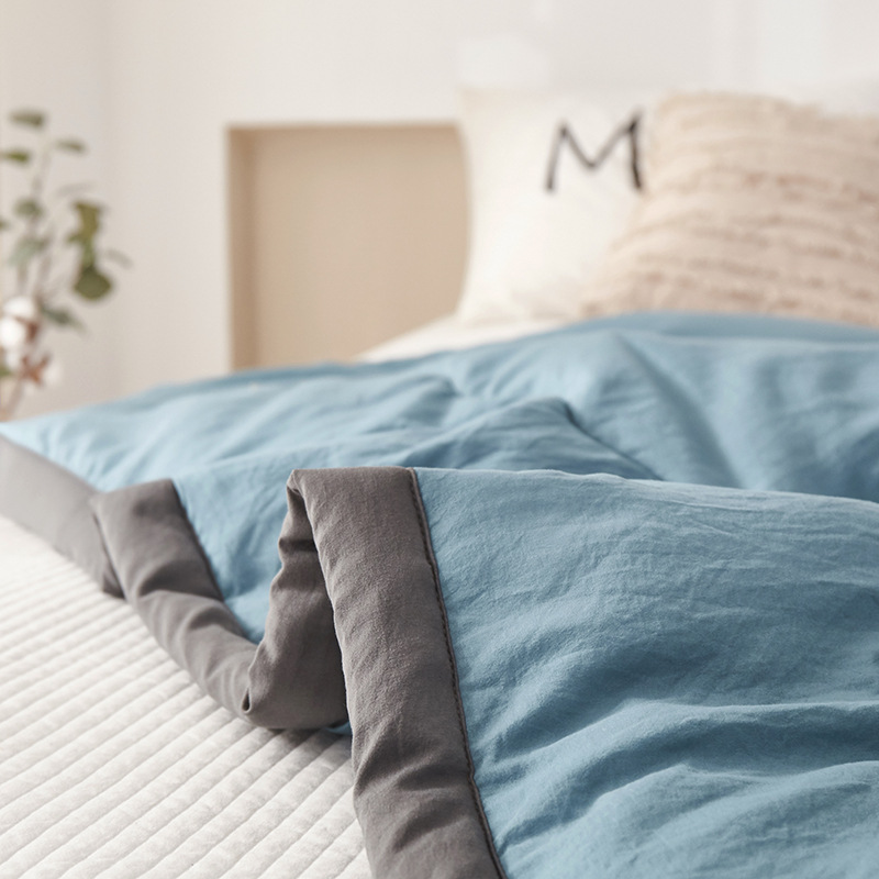 - Flower pattern: Japanese-style cotton-washed summer quilt-dark gray