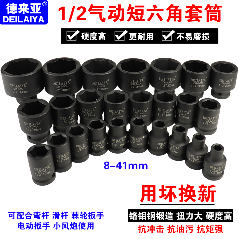 - 規格型號:托邦1/2氣動短六角套筒10件套