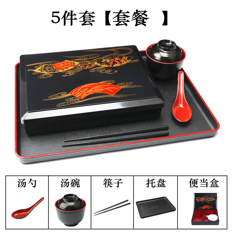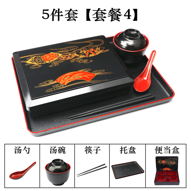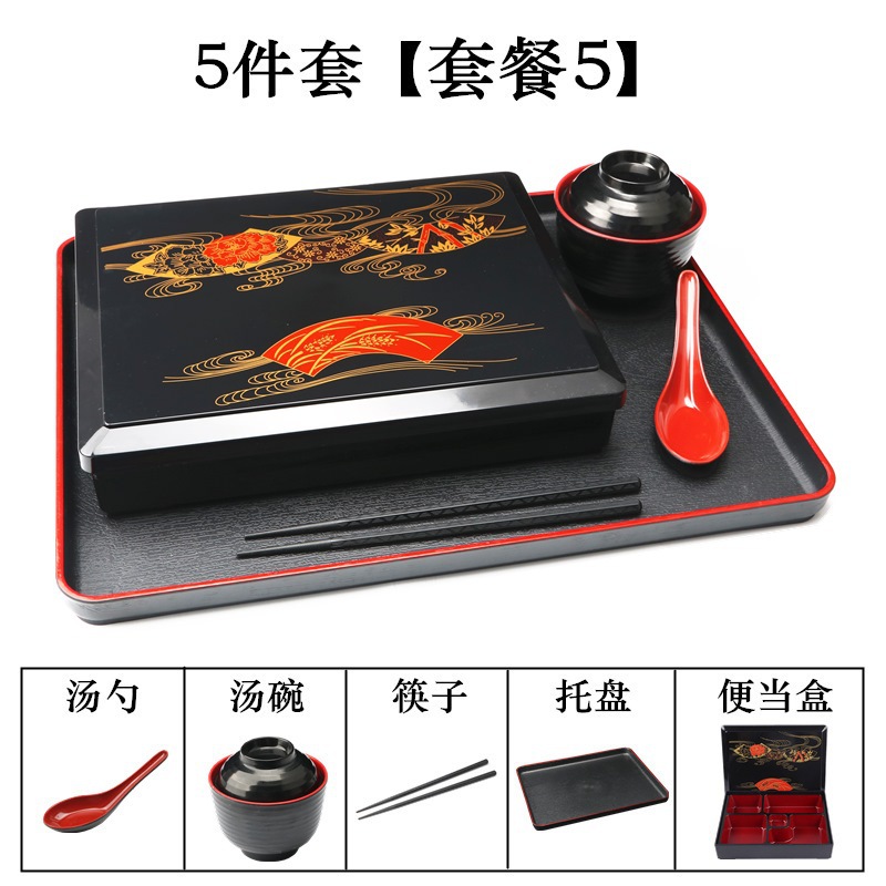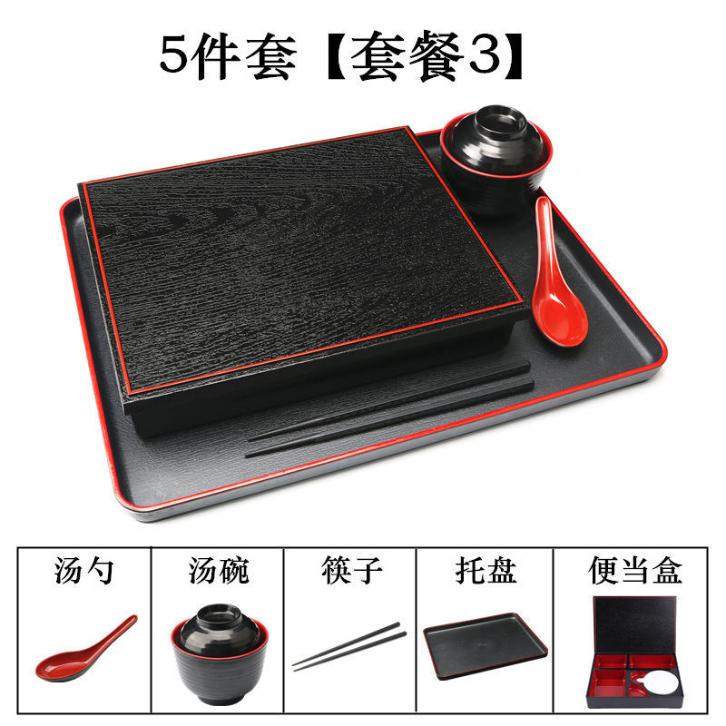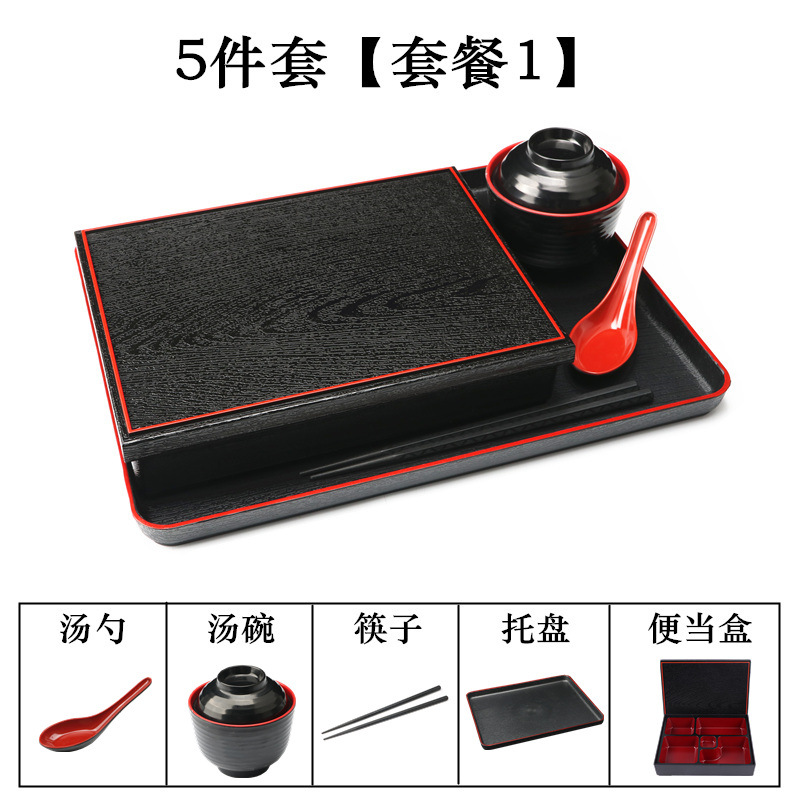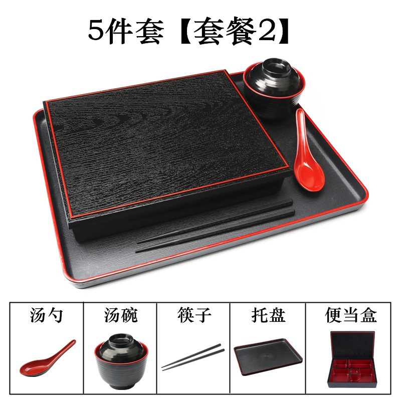- Specifications: Set 1: Small Wood Grain Box + Soup Spoon + Soup Bowl + Chopsticks + Tray (37*29cm)