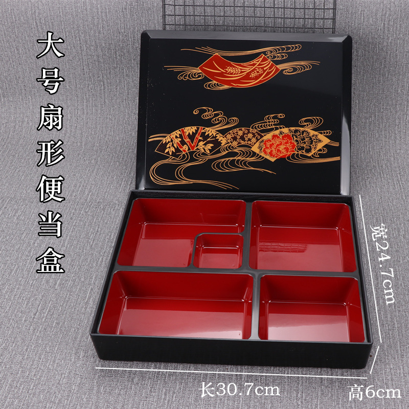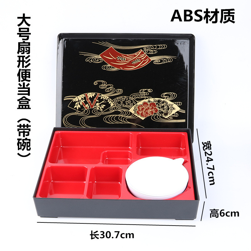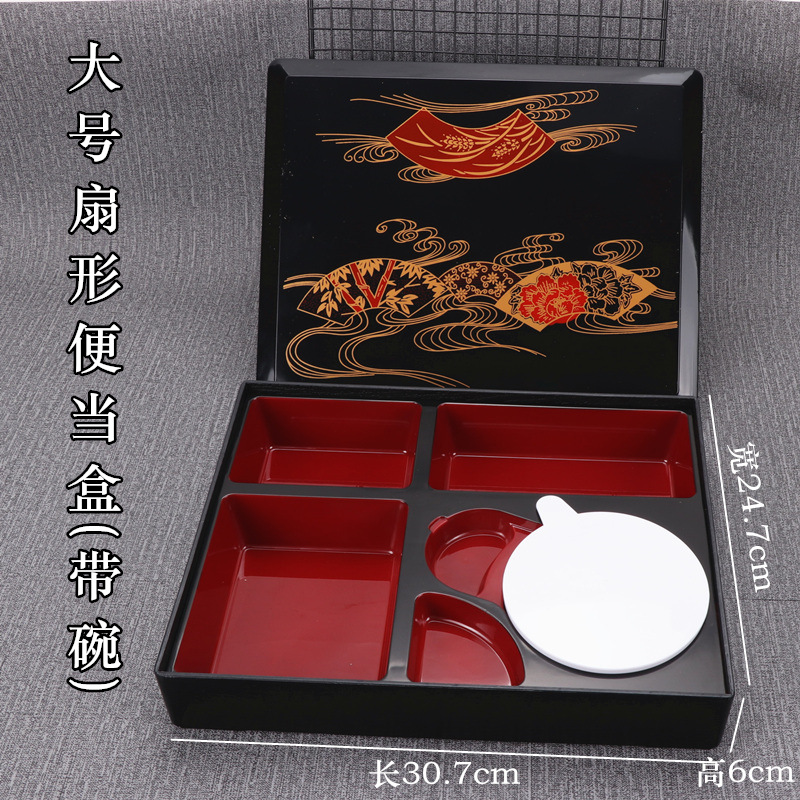 - Specifications: Set 5: Large Fan Shape Box + Soup Spoon + Soup Bowl + Chopsticks + Tray (42*33cm)