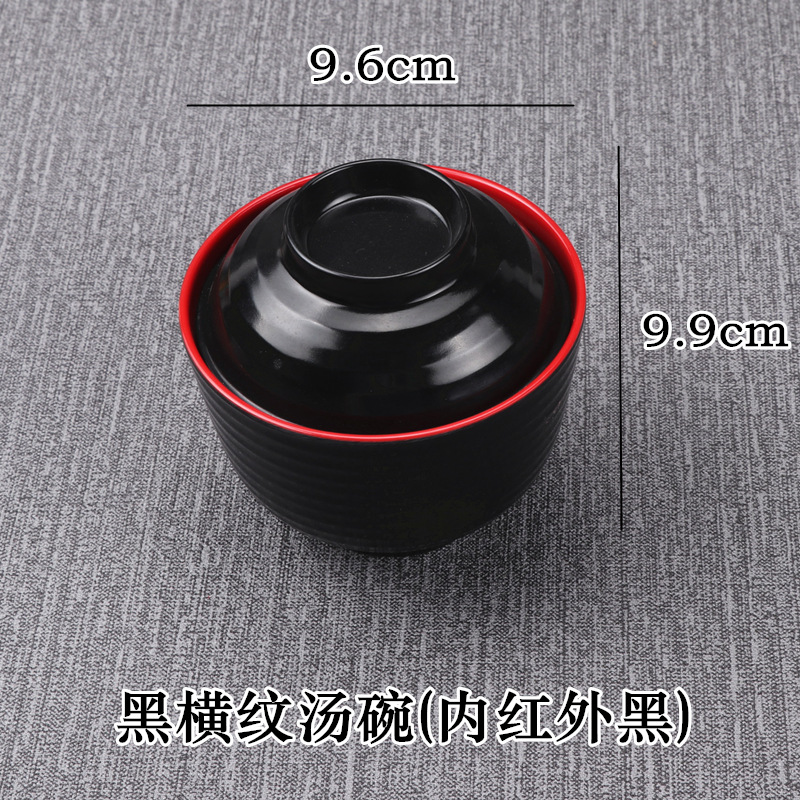- Specifications: Black Horizontal Pattern Soup Bowl (Inner Red, Outer Black)