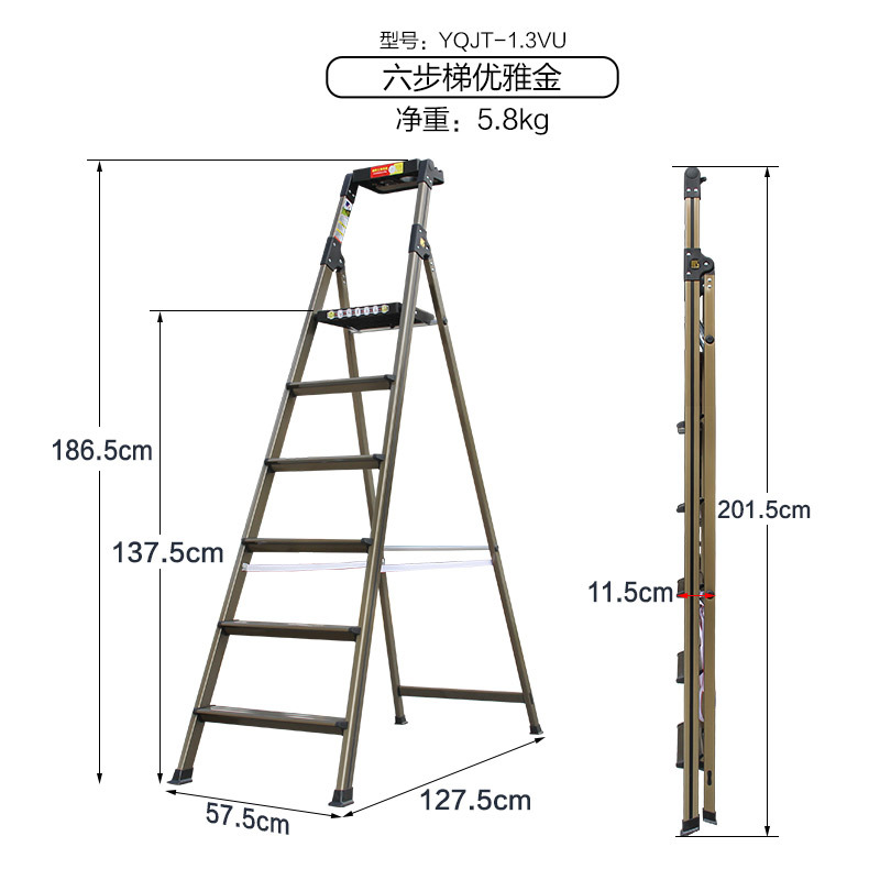 - Number of steps: Thickened new elegant gold 6-step ladder - 1.3VU