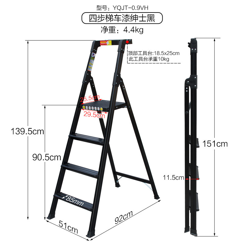 - Number of steps: Thickened new pearl black 4-step ladder - 0.9VH