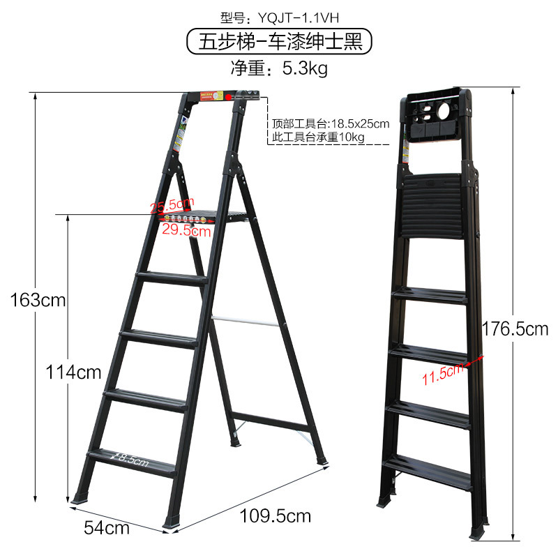 - Number of steps: Thickened new pearl black 5-step ladder - 1.1VH