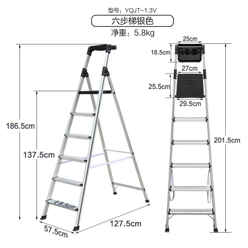 - Number of steps: Thickened new silver 6-step ladder - 1.3V