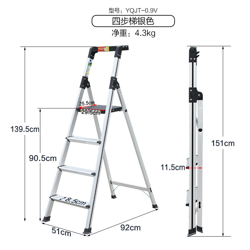 - Number of steps: Thickened new silver 4-step ladder - 0.9V